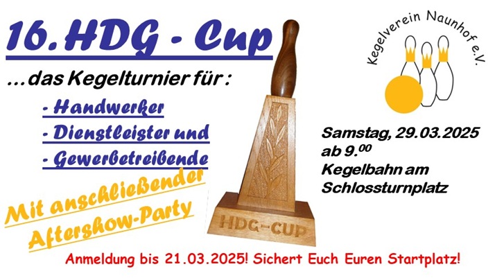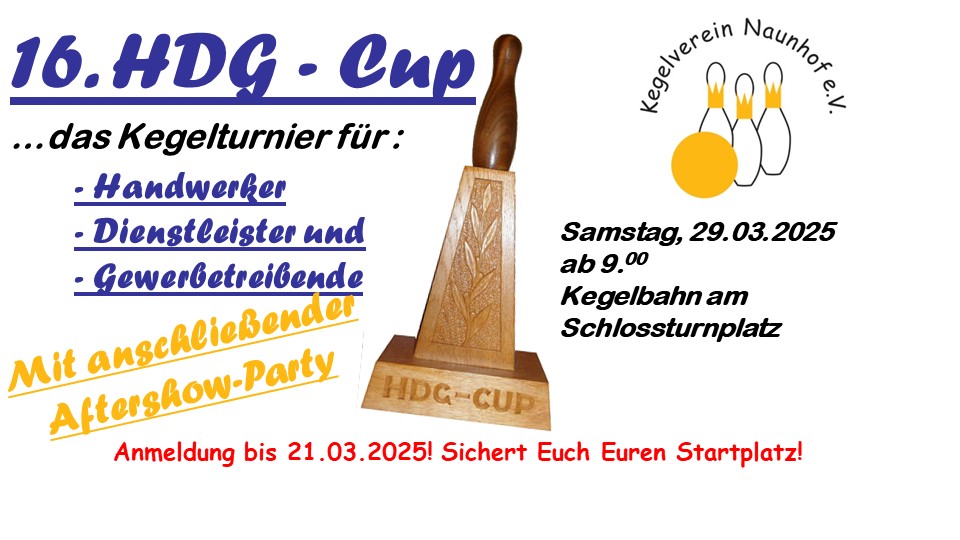 Am 05.03. trug der Kegelverein Naunhof e.V. zum 14. Mal den HDG-Cup, das Kegelturnier für Handwerker, Dienstleister und Gewerbetreibende aus. Nach der Pandemie konnte es erstmalig ohne Auflagen und Einschränkungen stattfinden. So hatten sich insgesamt sechzehn Mannschaften angemeldet und der Vorraum unserer Kegelbahn war ganztägig sehr gut gefüllt.