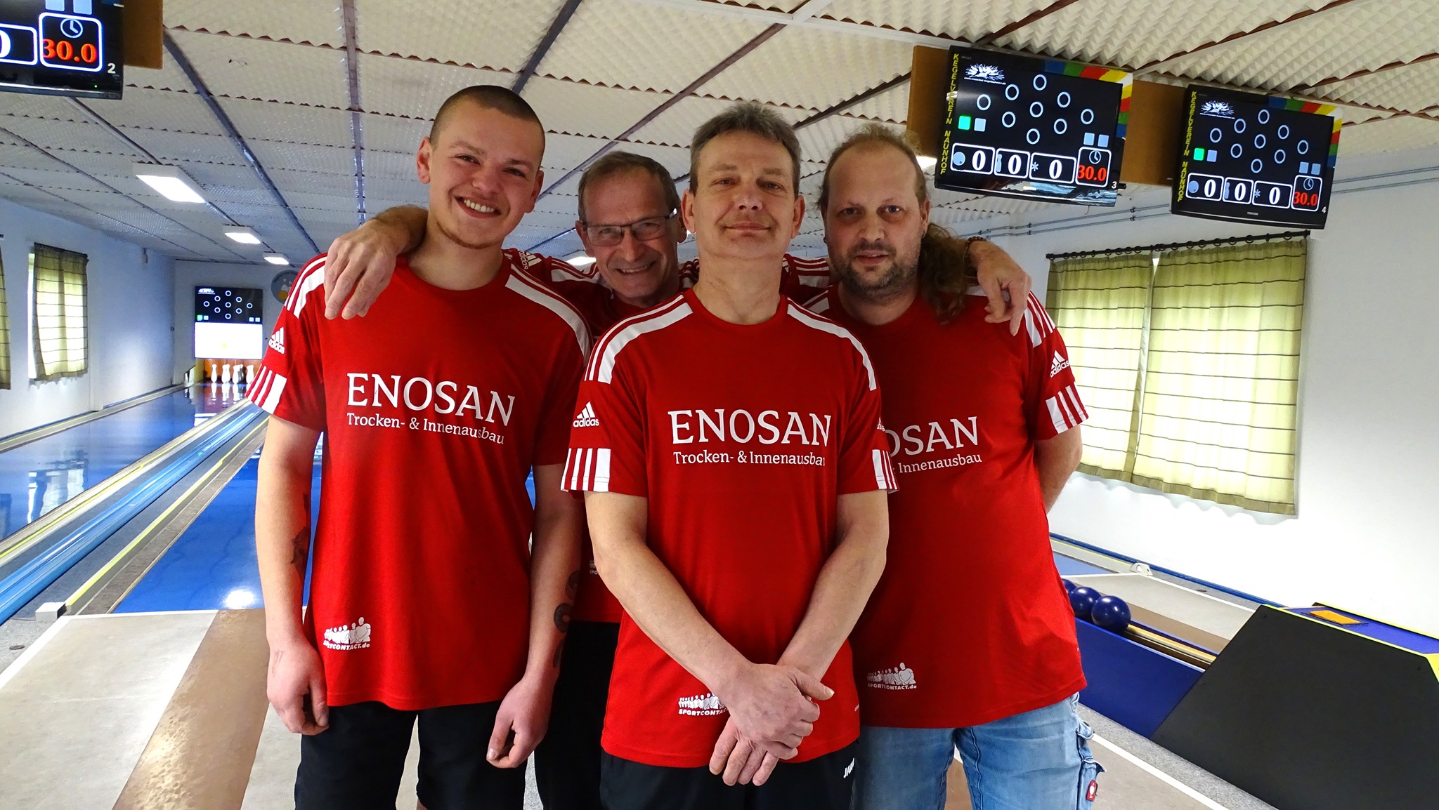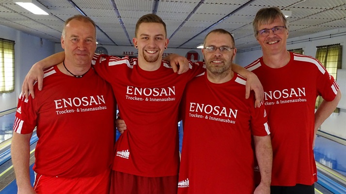 Das Team DS von Dirk Schmeißer Kaufmännische Dienstleistungen eröffnete das Turnier und konnte sich zum Vorjahresergebnis um 3 Holz verbessern. Es folgten die Feuerfeen der Freiwilligen Feuerwehr und das Team ESA Grimma, das sich mit 792 Kegeln vorerst an die Spitze setzte. Auch die Feuerwehrmänner spielten mit 770 Holz stark auf, wurden jedoch vom GIMA-Team um 2 Kegel geschlagen. Die „Zufallstreffer“, das erste von vier ENOSAN-Teams, konnten jedoch nur die Feuerfeen überspielen. Ebenfalls die RB-Handwerker um Heizungs- und Sanitärinstallationen Jörg Hausmann aus Leisnig konnten mit den Ergebnissen der Spitze nicht mithalten. Zum ersten Mal dabei waren die Verrückten Waldwichtel, die mit Janine Stöbe die Gewinnerin der Frauen-Einzelwertung stellten. Nach dem ISEKI-Werksteam folgten die Vorjahressieger Raum & Fassade Jörg Brandis, die jedoch nicht an diesen Erfolg anknüpfen konnten und am Ende auf Platz 9 landeten. Die ENOSAN „Außenseiter“ wollten ganz vorne mitspielen, verpassten jedoch die Feuerwehrmänner um 5 Kegel. Knapp über die 700 spielten die Brandis Schrotties von Hofmann Metall. Die Startnummern 14 und 15, der Personalrat der Stadtverwaltung und ENOSAN „Unbelehrbar“ belegten die Plätze 15 und 14. Dann wurde es richtig spannend mit dem Werbeteam Hertel, die auf den letzten Würfen ein Team nach dem anderen überholten und sich mit 808 Holz den HDG-Cup sicherten. Da konnten die ENOSAN „Volltreffer“ und das Jamas-Team Korfu nicht mithalten. Die classIKKer nahmen als letzte Starter nochmal die Tabellenspitze ins Visier, scheiterten jedoch am ESA-Team und wurden Dritte.