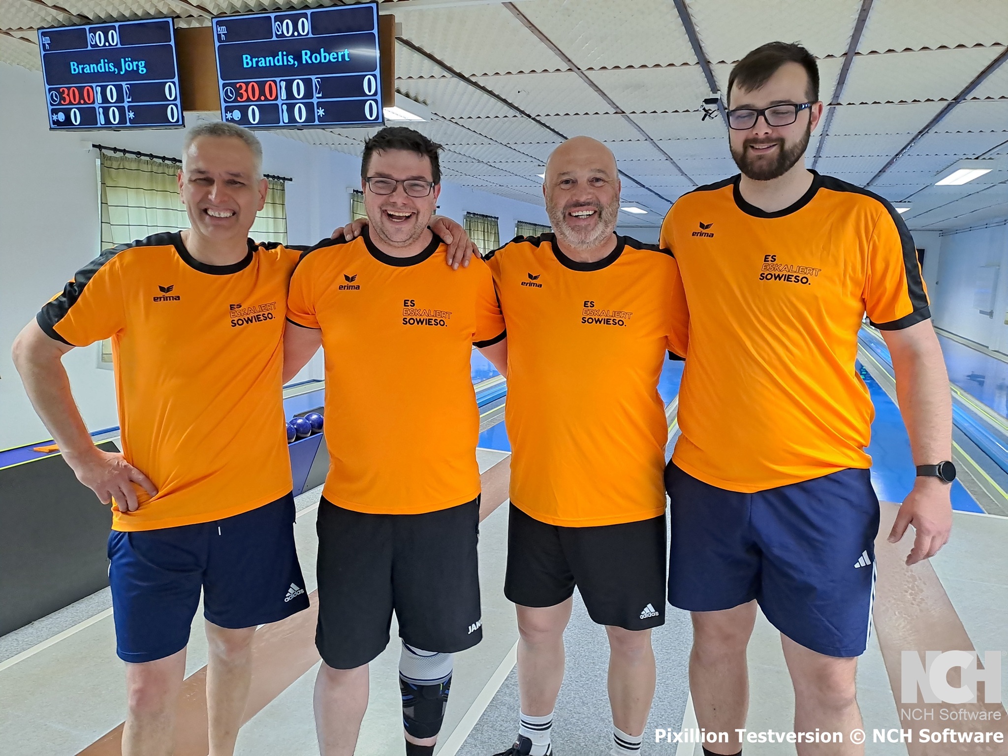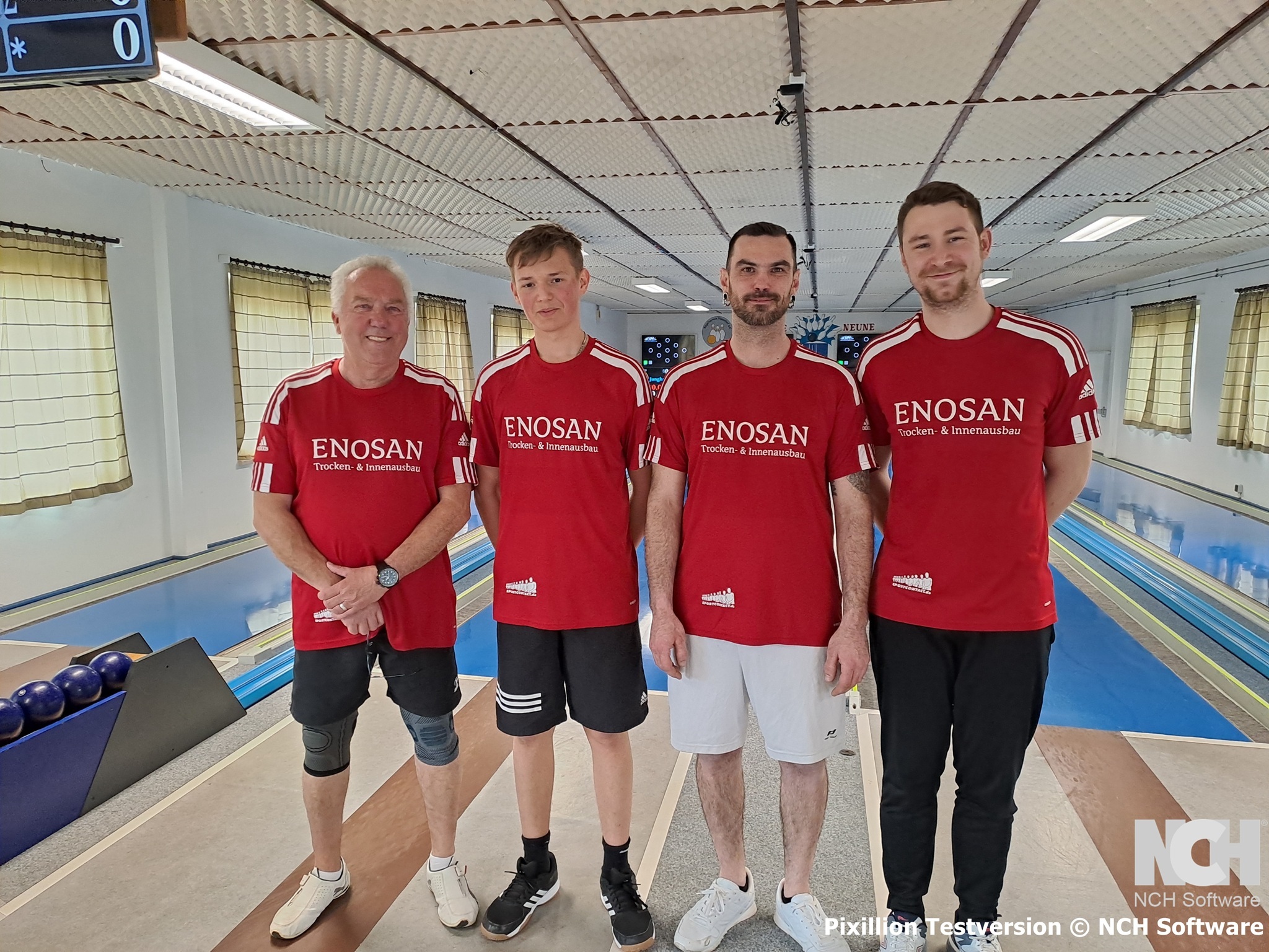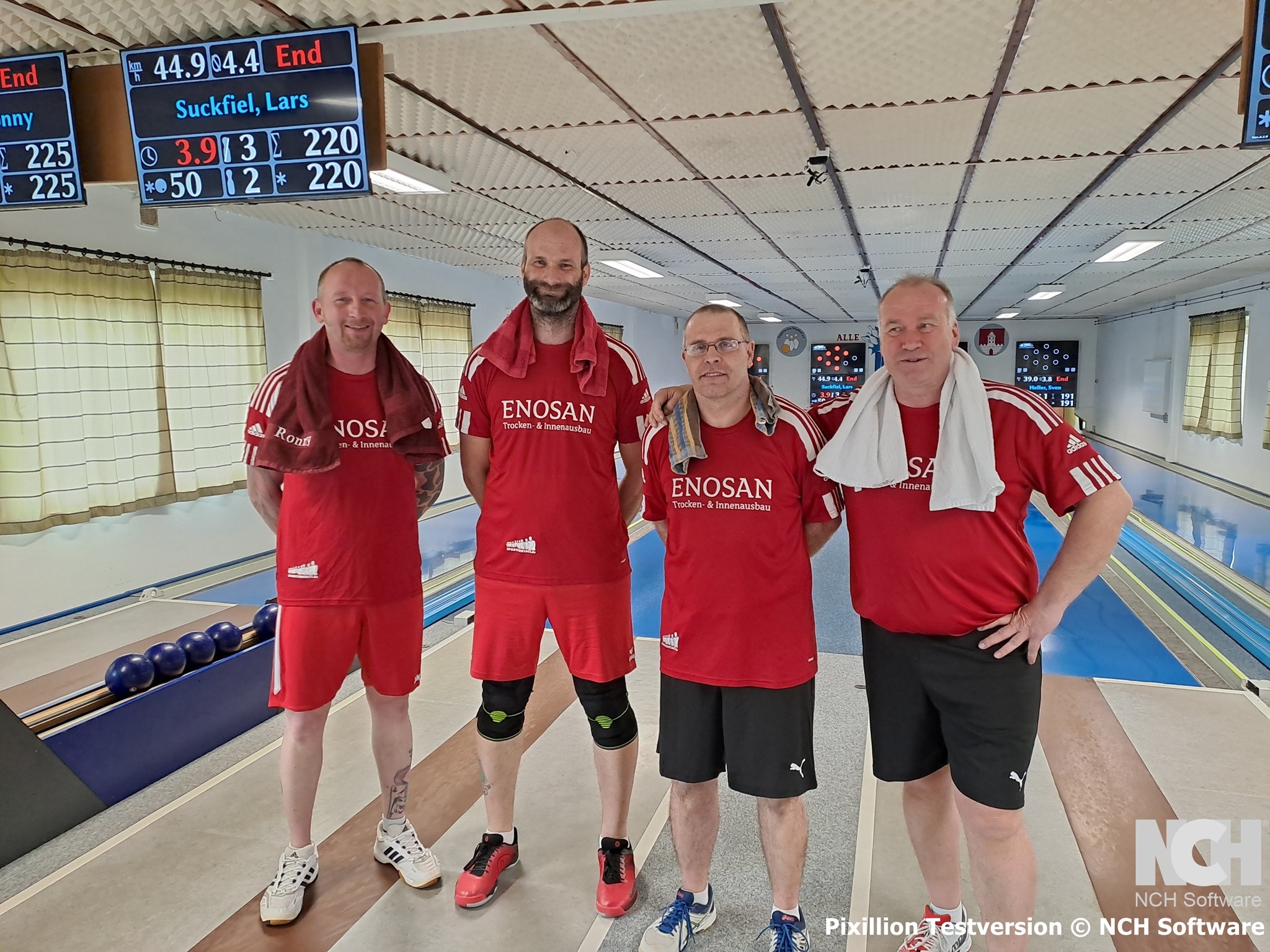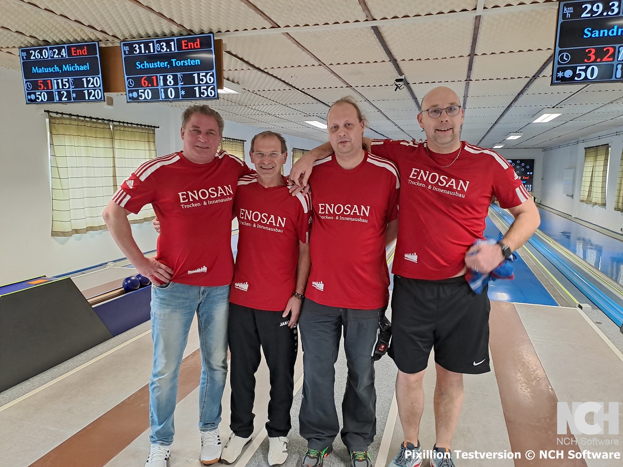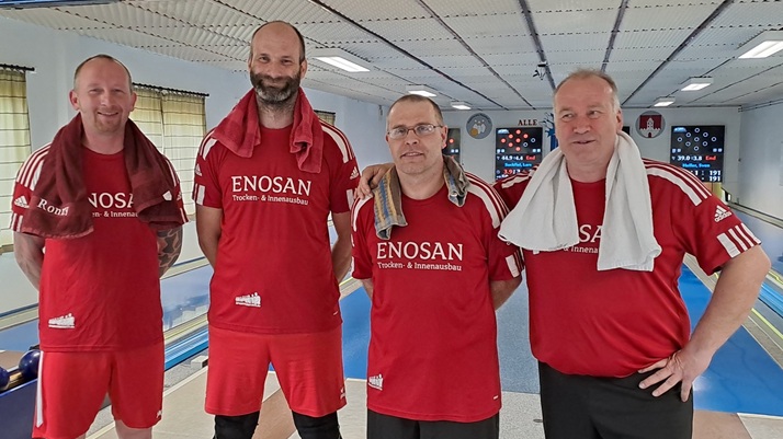 Das größte Aufgebot stellte ENOSAN mit den Teams Pinschwestern (546), Inferno (666), Abrissbirnen (578) und Königs8, die sich mit überragenden 865 Kegeln die Führung holten. Es folgten die Kegel-Bürokraten aus dem Rathaus unter Führung von Bürgermeisterin Anna Luise Conrad, die mit 430 Kegeln die Feuerfeen II hinter sich ließen. Nach Raum & Fassade Jörg Brandis, die mit 730 Kegeln nicht an die Spitzenteams herankamen und DS Kaufmännische Dienstleistungen (558) gingen Die Hörmänner aus Brandis als neue und schwer einzuschätzende Teilnehmer an den Start. Sie schoben sich immerhin mit 696 am ISEKI Werksteam vorbei. Den Abschluss des Starterfeldes nahm das ESA Team aus Grimma ein, die im Vorfeld durchaus Titelambitionen hatten. Mit 773 Kegeln verdarben sie den Feuerteufeln letztlich noch den 3. Platz. Am Ende gewann die Mannschaft ENOSAN Königs8 mit überragenden 865 Kegeln vor den classIKKern mit 782 und ESA mit 773 Holz. Die besten Einzelleistungen spielten bei den Frauen classIKKerin Christin Fritzsche mit 202 Kegeln und bei den Männern Roland Schlegel vom ISEKI Werksteam mit 238 Kegeln. Den unter allen zur Siegerehrung noch anwesenden nichtplatzierten Teams verlosten Sonderpreis gewannen die Feuerfeen. Prämiert wurden ebenfalls der letzte Platz und die Rattenkönigin.