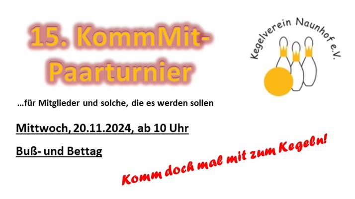 Das KommMit-Paarturnier wird jedes Jahr am Buß- und Bettag, der hier im Freistaat Sachsen gesetzlicher Feiertag ist, ausgetragen. Dabei sind alle Vereinsmitglieder aufgerufen, mit einem Partner aus Familie Freundes- oder Bekanntenkreis als "ungleiches Paar" anzutreten und so das Interesse am Kegelsport zu wecken. Das Siegerpaar gewinnt den Wanderpokal.