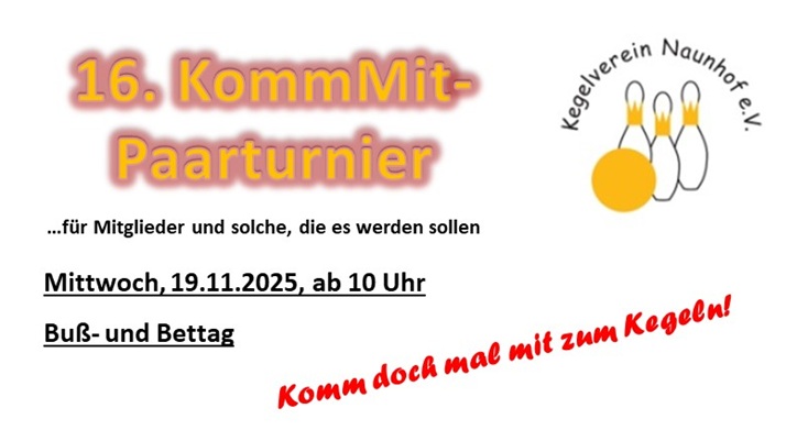 | KommMit-Paarturnier | Für Mitglieder und solche die es werden sollen. Zu diesem Turnier tritt jeweils ein Mitglied mit einem Nichtmitglied als Paar an. |