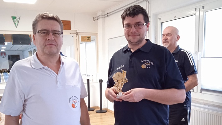 Bei den Männern konnte Chris Beyersdorf die Qualifikation gewinnen war damit gleich für das Viertelfinale gesetzt. Während Karsten Ullmann sein Achtelfinale gegen Helmut Hofmann klar mit 2:0 gewann, ging es für Roland Schlegel und U18-Spieler Lucian Muchow ins Stechen, das Lucian für sich entschied. Michael Möhring holte gegen Toralf Lips beide Satzpunkte genau wie Sven Fleischer gegen Frank Schillgalies. Max Lofing schickte den Titelverteidiger Stefan Schober nach Sudden Victory ebenfalls (vorerst) aus dem Wettbewerb. Auf den Nachbarbahnen gingen im Achtelfinale zwischen Henry Richter und Ingo Bieler beide Punkte an Henry.